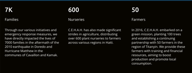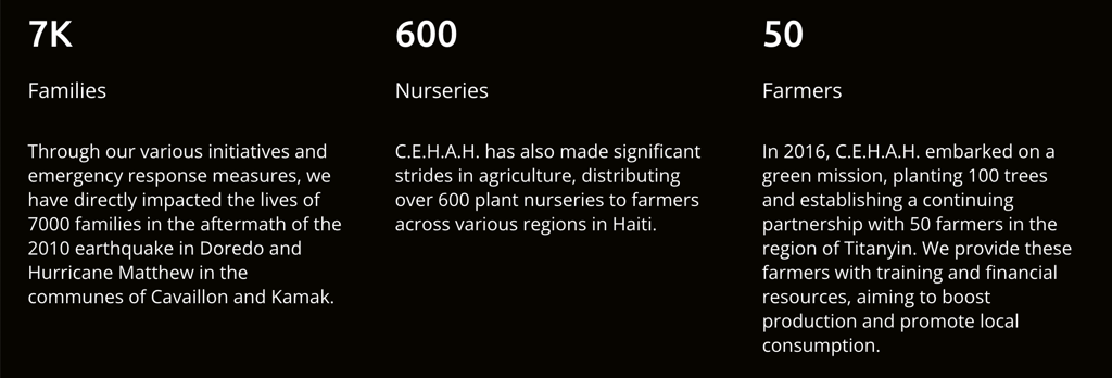 The Centre Haïtien d’Action Humanitaire (CEHAH) is a 501(c)(3) non-profit organization registered in the United States, Haiti, and Canada. We are dedicated to fostering sustainable development and enhancing the well-being of individuals of Haitian descent in Canada, the United States and beyond.